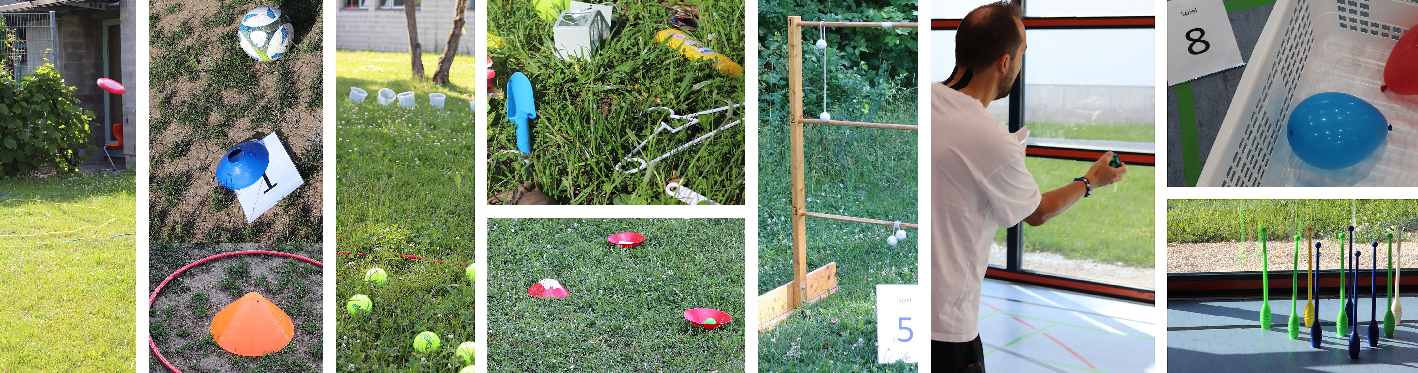 Bei der dritten Station musste beim Moonball der Ball an der Wand abprallen, im definierten Feld bleiben und wieder gefangen werden. Beim Luftballon hochhalten galt es sich mit Federballschlägern einen Luftballon zuzuspielen, ohne dass dieser runterfällt. Umfallen, war hingegen das Ziel beim dritten Spiel: Bowling.