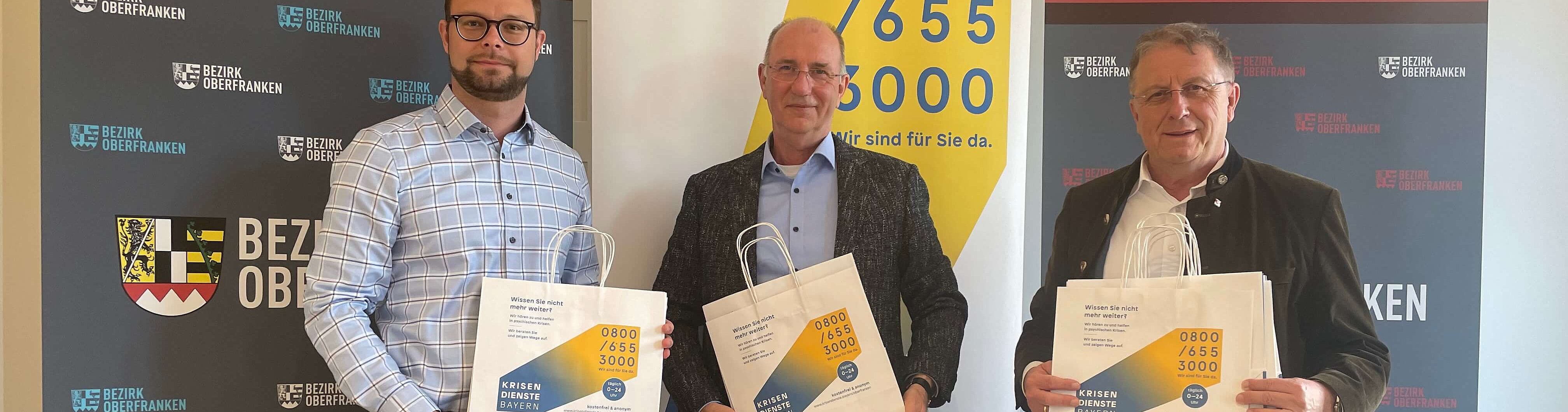 Durch die Aktion mit den bedruckten Papiertaschen soll die gebührenfreie Hotline des Krisendienstes Oberfranken, die 0800 655 3000, unter der Menschen in seelischen Krisen und Notlagen schnell und unbürokratisch qualifizierte Hilfe und Unterstützung bekommen können, noch bekannter gemacht werden.