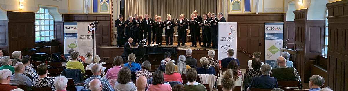 Zum Beispiel „Yesterday“ von den Beatles oder „Ein kleiner, grüner Kaktus“ von den Comedian Harmonists. Wenn die Sänger des Chors durchatmen, gilt das nicht für das Publikum. Die rund 80 Gäste im Festsaal werden nun von Mezzosopranistin Katharina Flierl in ihren Bann gezogen. „Sexappeal“ und „Die Kleptomanin“ von Friedrich Holländer sind nur zwei Lieder, bei denen sie ihr Können hören lässt. Und so endet das kurzweilige Konzert mit der bereits erwähnten Zugabe. „Ein Freund, ein guter Freund" von den Comedian Harmonists wird zum zweiten Mal an diesem Abend gesungen. Nur diesmal eben von den Herren auf der Bühne und den Besuchern im Saal gemeinsam.