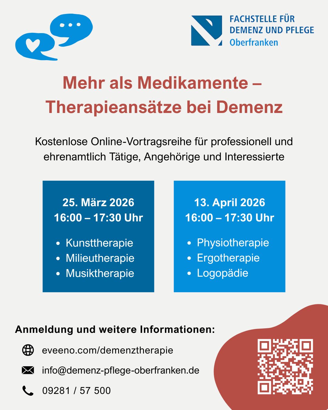 - Mehr als Medikamente - Therapieansätze bei Demenz, Kostenlose Online-Vortragsreihe für professionell und ehrenamtlich Tätige, Angehörige und Interessierte